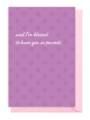 Celebrate the mutual blessing of parenthood with this simple message. This charming card highlights the profound connection between the baby and the parents. The perfect gift from the voice of the baby to the new parents for any occasion.