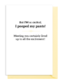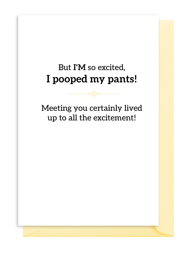 Everyone’s excited, but the baby’s excited enough to poop their pants! This newborn card delivers a hilarious take on the big meeting. It’s the perfect funny card for new parents with a great sense of humor. Celebrate the mess—it lived up to the excitement!