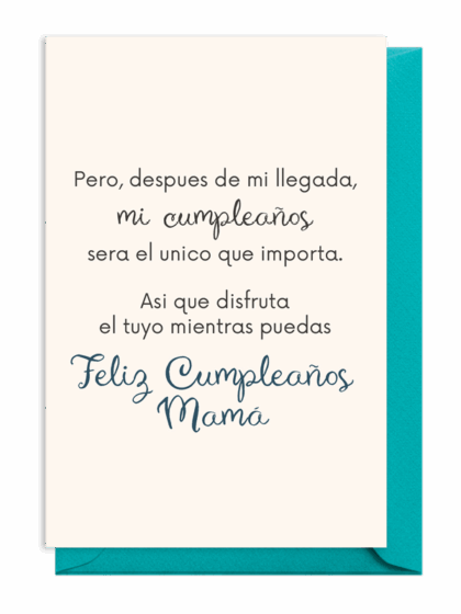 ¡Feliz Cumpleaños, Mamá! Esta tarjeta dulce convierte un simple cumpleaños en una celebración de la maternidad, confirmando que el regalo más grande está por llegar: ¡el bebé! Es la tarjeta de cumpleaños perfecta para el embarazo y un hermoso regalo para la futura mamá.